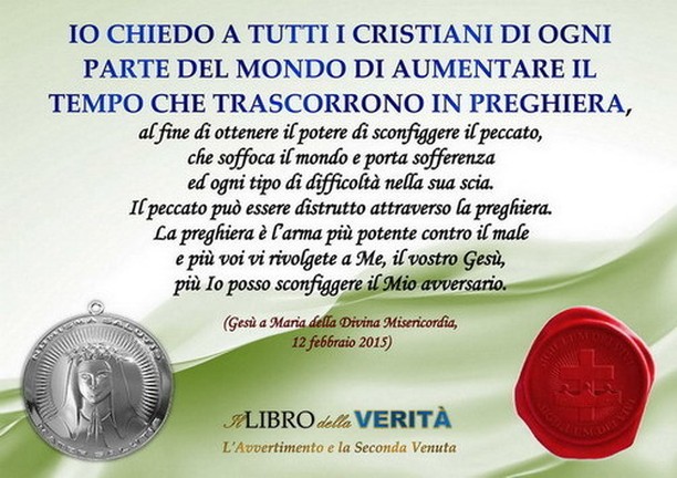 ♥• ▆ ✔ Io chiedo a tutti i cristiani di ogni parte del mondo di aumentare il tempo che trascorrono in preghiera, al fine di ottenere il potere di sconfiggere il peccato, che soffoca il mondo e porta sofferenza ed ogni tipo di difficoltà… https://messaggidivinamisericordia.wordpress.com/2015/03/14/io-chiedo-a-tutti-i-cristiani-di-ogni-parte-del/ ºººº