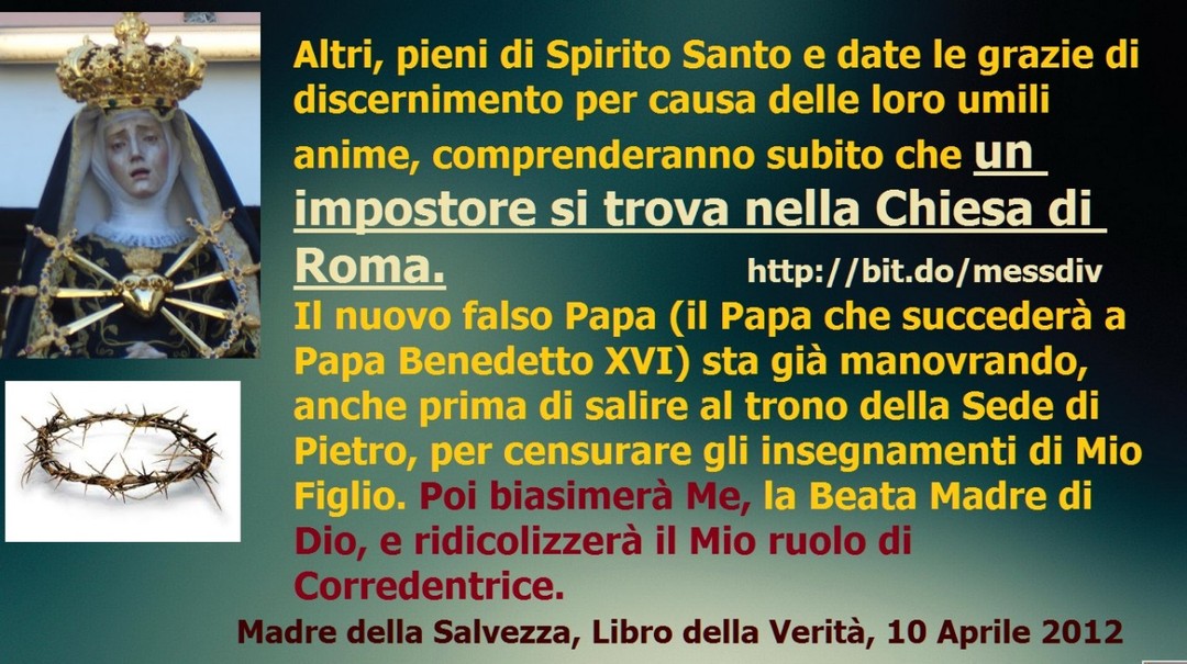 Altri, pieni di Spirito Santo e date le grazie di discernimento per causa delle loro umili anime, comprenderanno subito che un impostore si trova nella Chiesa di Roma http://messaggidivinamisericordia.blogspot.com/2020/08/un-impostore-si-trova-nella-chiesa-di.html ººººº