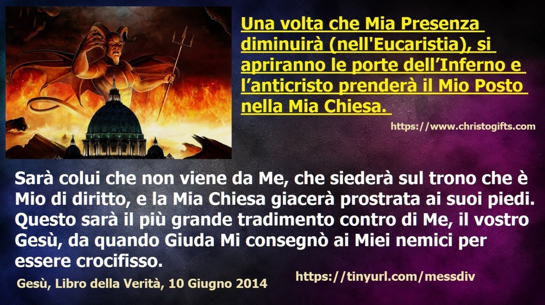 ►► l Una volta che Mia Presenza diminuirà (nell'Eucaristia), si apriranno le porte dell'Inferno e l'anticristo prenderà il Mio Posto nella Mia Chiesa https://messaggidivinamisericordia.blogspot.com/2020/04/una-volta-che-mia-presenza-diminuira.html ºººº