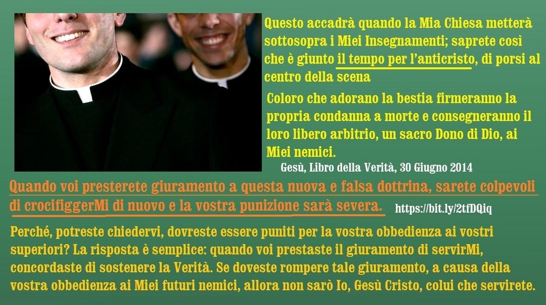 Quando voi presterete giuramento a questa nuova e falsa dottrina, sarete colpevoli di crocifiggerMi di nuovo e la vostra punizione sarà severa https://gesau-it.tumblr.com/post/182763183743/30-giugno-2014-voi-potete-sostenere-solo-la ºººº