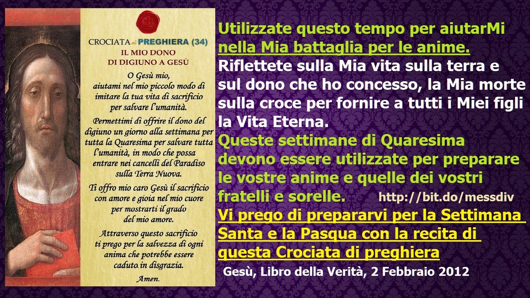 ❀*`*• Vi prego di prepararvi per la Settimana Santa e la Pasqua con la recita di questa Crociata di preghiera (34) il Mio dono di digiuno a Gesù https://messaggidivinamisericordia.blogspot.com/2024/02/la-quaresima-di-gesu-allumanita.html ºººº