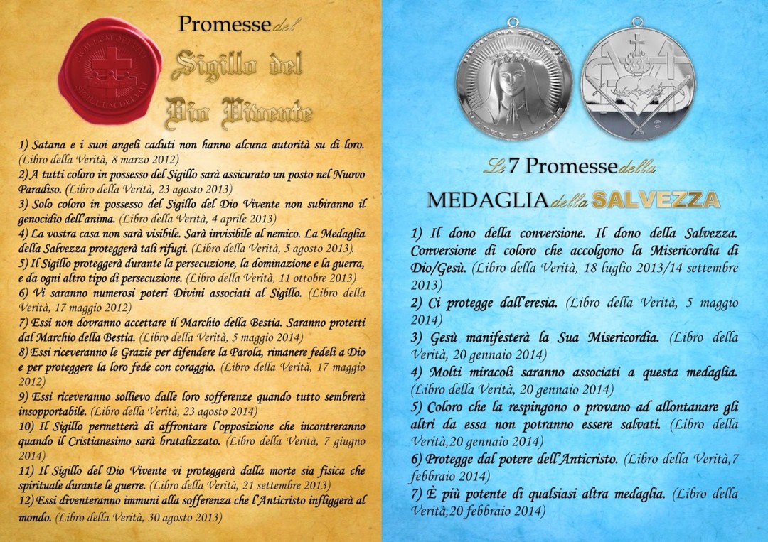 •*¨`*•✿ Promesse del Sigillo del Dio Vivente e della Medaglia della Salvezza, files da stampare http://messaggidivinamisericordia.blogspot.com/2017/11/promesse-del-sigillo-del-dio-vivente-e.html ººººº