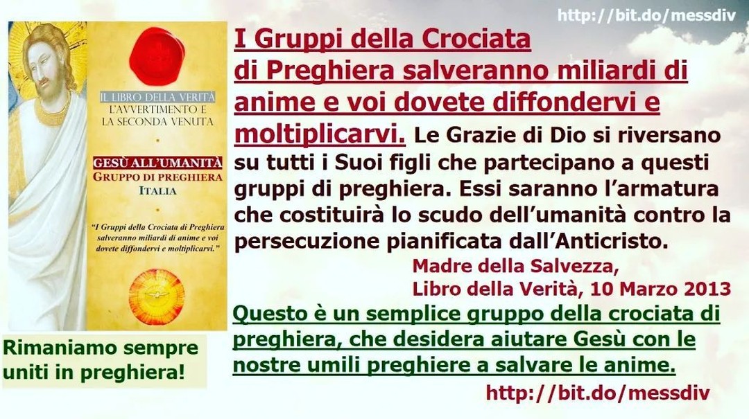 ♥´´¯`•.¸¸.☆ “I Gruppi della Crociata di Preghiera salveranno miliardi di anime e voi dovete diffondervi e moltiplicarvi". https://rebrand.ly/a9t96t2 ºººº