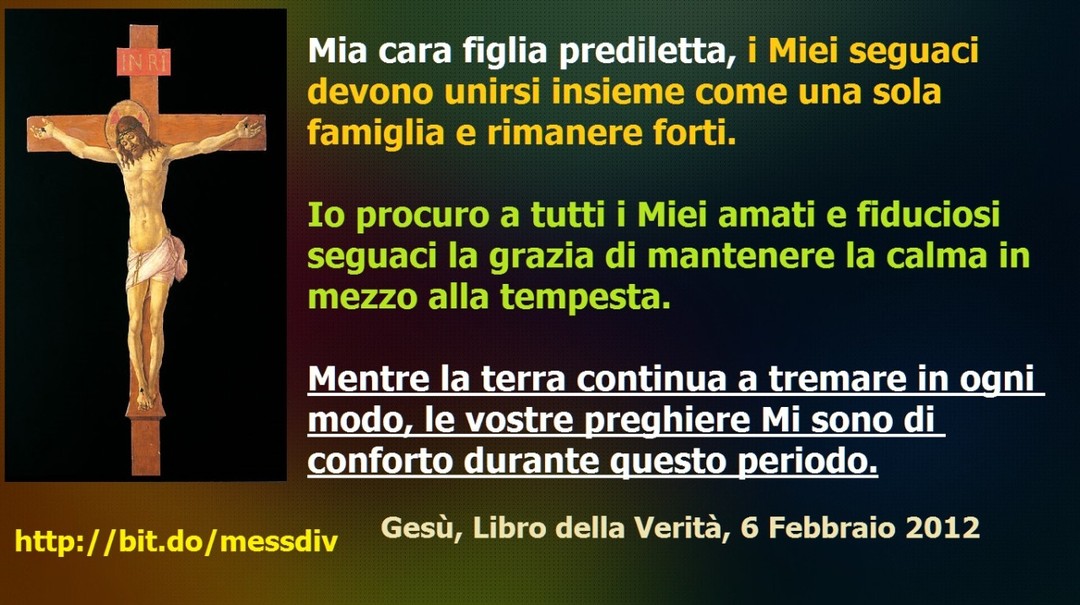 I Miei seguaci devono unirsi insieme come una sola famiglia e rimanere forti. Io procuro a tutti i Miei amati e fiduciosi seguaci la grazia di mantenere la calma in mezzo alla tempesta. https://messaggidivinamisericordia.blogspot.com/2022/03/i-miei-seguaci-devono-unirsi-insieme.html ºººº